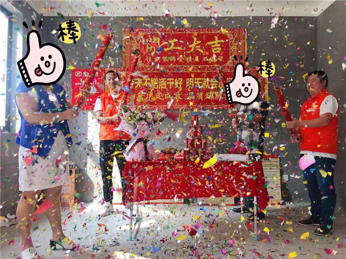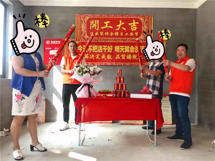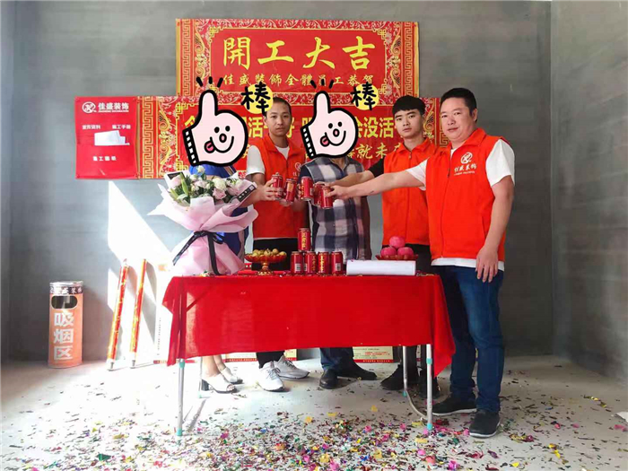 業(yè)主、設(shè)計師、項目經(jīng)理開工合影: