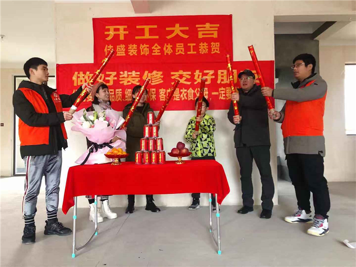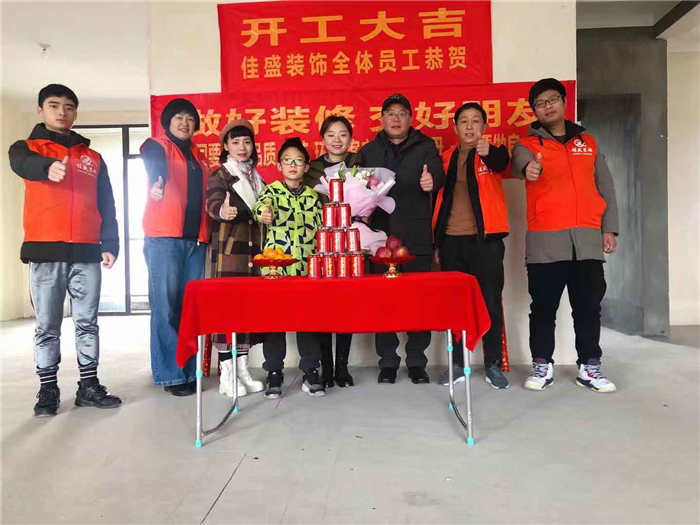 業(yè)主、設(shè)計師、項(xiàng)目經(jīng)理開工合影: